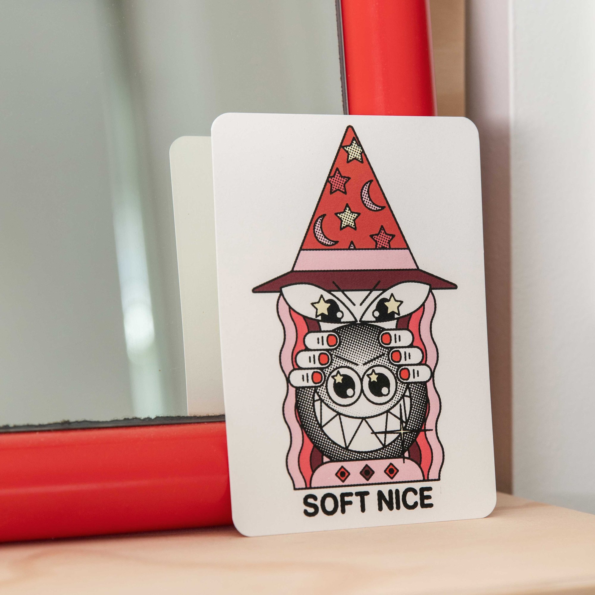 A6, 352GSM art print with rounded corners and a matte paper finish. A cute little piece of Soft Nice to add to your wall – everyone needs a little magical being watching out for them.