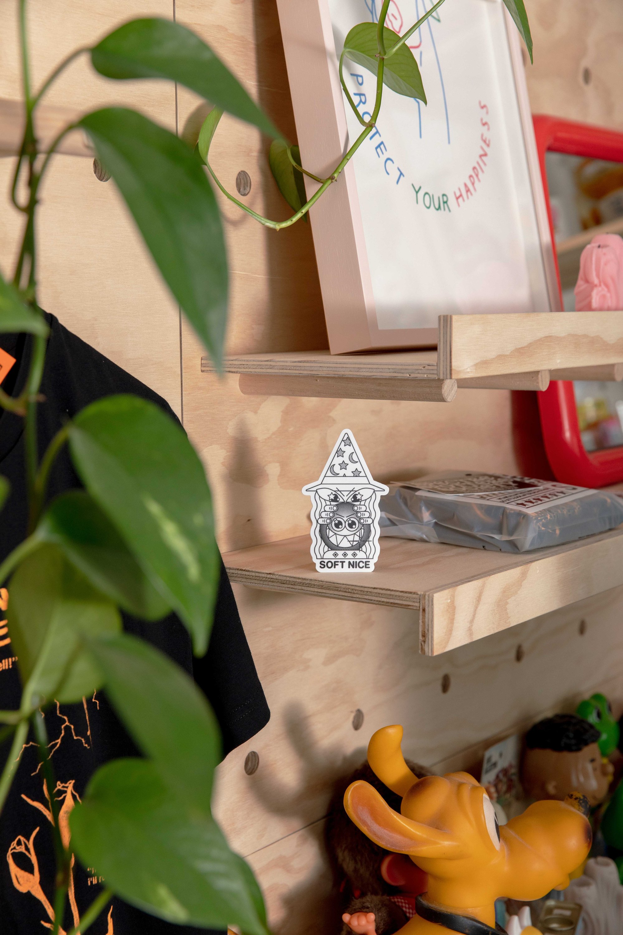 Black and white vinyl sticker featuring a wizard and their cheeky friend! Unlike a real crystal ball, this baby won't set your house on fire if it's left in the sun. Weatherproof, 7 x 9.8cm in size, die cut and matte finish.